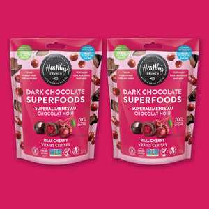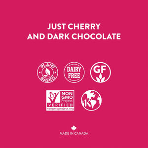 Just dark chocolate and cherries! Our Cherry Dark Chocolate Fruit are made with real, whole fruits and then wrapped in 70% dark vegan chocolate.