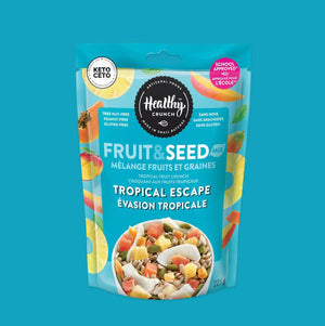 Our Healthy Crunch Trail Mixes are made with sunflower seeds and pumpkin seeds as the base. Then we include dried, whole fruits.