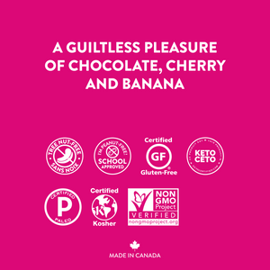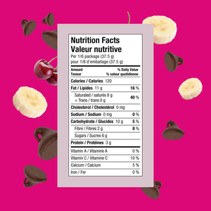 Sunflower Seeds, Dried Cherries, Dried Banana, Dark Chocolate (Cocoa Liquor, Cane Sugar, Cocoa Butter, Natural Cocoa Powder).