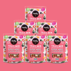 Our Healthy Crunch Trail Mixes are made with sunflower seeds and pumpkin seeds as the base. Then we include dried, whole fruits.